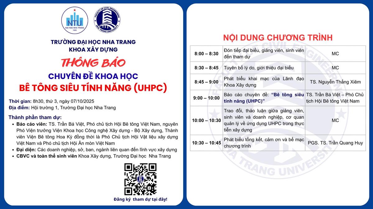 👉 Kính mời toàn thể giảng viên, sinh viên Khoa Xây dựng tham dự đầy đủ.
